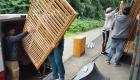 Sammeln, Transportieren und Aufbauen der Möbel.