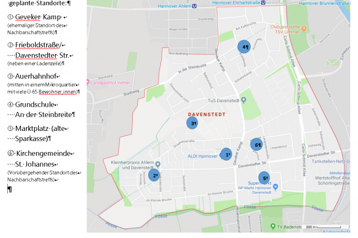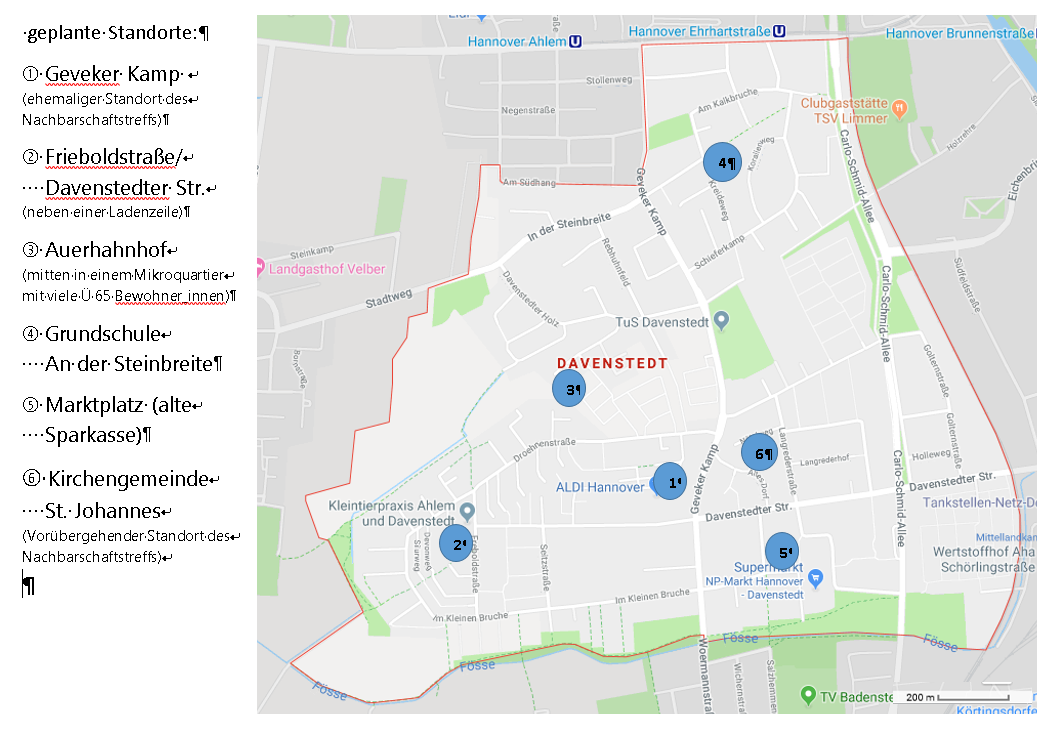 Daraus ergibt sich, dass Handlungsansätze gefunden werden müssen, die die Unterschiedlichkeit der Wohnquartiere im Stadtteil aufgreifen müssen. Beispielhaft erwähnt sei hier das Quartier um den Marktplatz mit den angrenzenden Unterkunftshäusern am Geveker Kamp. Hier entwickelt sich ein sozialer Brennpunkt (so auch die Voruntersuchungen zum Programm "Soziale Stadt").