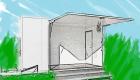 Der Anhänger, der als Büro, als Bühne und auch als als kleiner Veranstaltungsraum genutzt wird, ist mit einem Pavillon erweiterbar. Damit ist das Angebot weitestgehend wetterunabhängig.