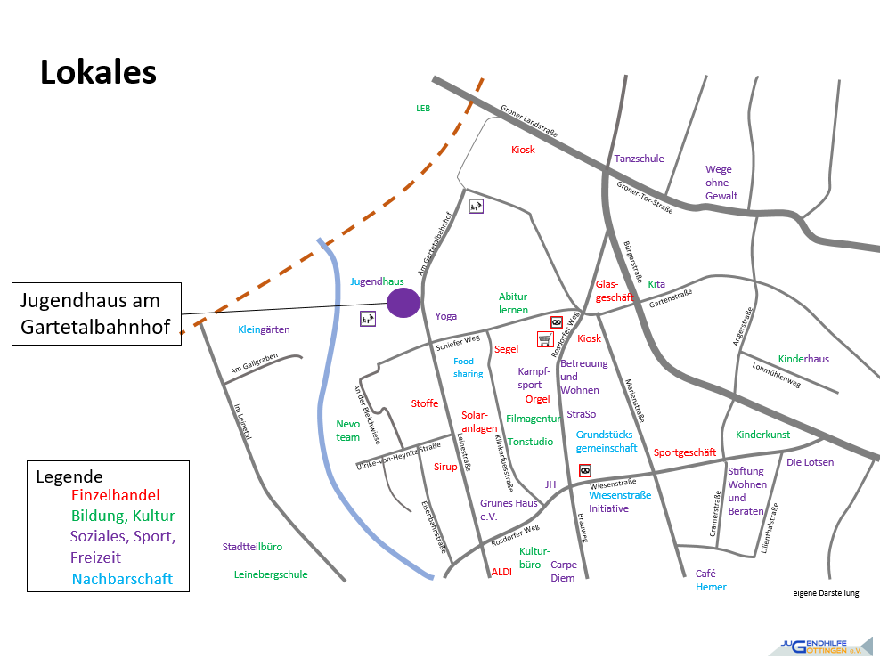 Es sind beides Einrichtungen der Jugendarbeit freier Träger (A: AWO mit dem "Kinder- u. Jugendhaus Lönsweg", B: Jugendhilfe e.V. mit dem „Jugendhaus Gartetalbahnhof“). Im Zuge des regelmäßigen Erfahrungsaustausches & des Informationstransfers beider Einrichtungen ist eine Kultur des "Miteinanders" & des "Von-einander-Lernens" in Gang gesetzt worden.