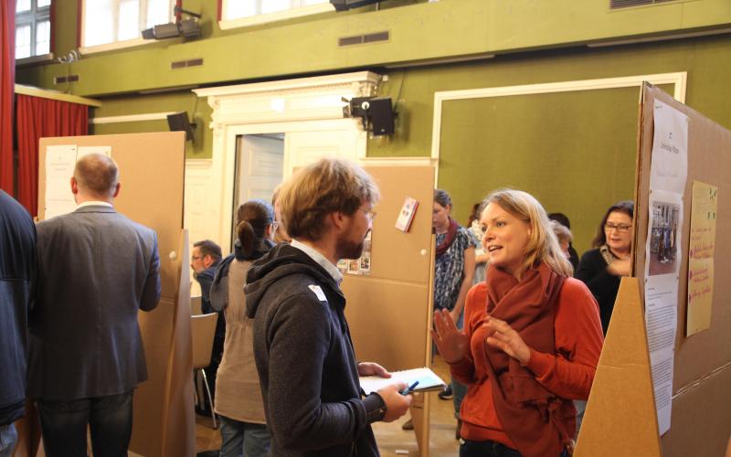 Eine Grundlage zu schaffen für die Umsetzung, den Austausch und die Zusammenarbeit - so lautete das gemeinsame Ziel des 1. Arbeitstreffens. Zu diesem hatten sich alle in 2019 geförderten Projekte sowie die drei Akteure aus dem Niedersächsischen Ministerium für Umwelt, Energie, Bauen und Klimaschutz, der Nbank und der LAG als Servicestelle, am 21.Oktober 2019 im Stadtteilzentrum Lister Turm (Hannover) zusammengefunden. Alle Ebenen der Projektumsetzung (Kommunen, Träger, Partner, „Kümmerer“ vor Ort) waren angesprochen und konnten sich bereits beim Ankommen und im Rundgang durch die Projektausstellung von den verschiedenen Ansätzen, ersten Erfahrungen und haufenweisen Ideen aller 39 Projekte ein Bild machen.