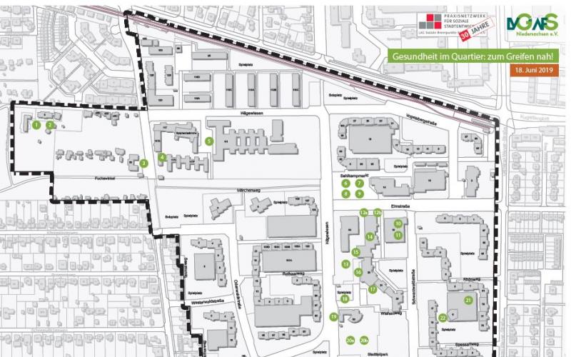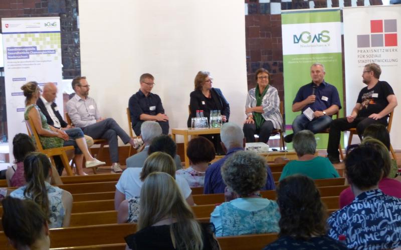 Am 18 Juni 2019 kamen rund 140 Besucher*innen sowie 50 Stadtteilakteure zusammen um sich mit dem Thema Gesundheitsförderung im Quartier zu befassen. Bei der Fachtagung der Landesvereinigung für Gesundheit und Akademie für Sozialmedizin Niedersachsen e. V. (LVF AFS) und der Landesarbeitsgemeinschaft Soziale Brennpunkte Niedersachsen e. V. waren Menschen aus den Bereichen Quartiersmanagement, Gemeinwesenarbeit, Stadtteilentwicklung, Soziale Arbeit und Gesundheit sowie Krankenkassenvertreter*innen und weitere am Thema Interessierte aus ganz Niedersachsen.