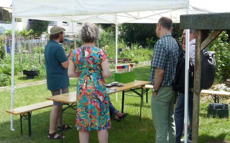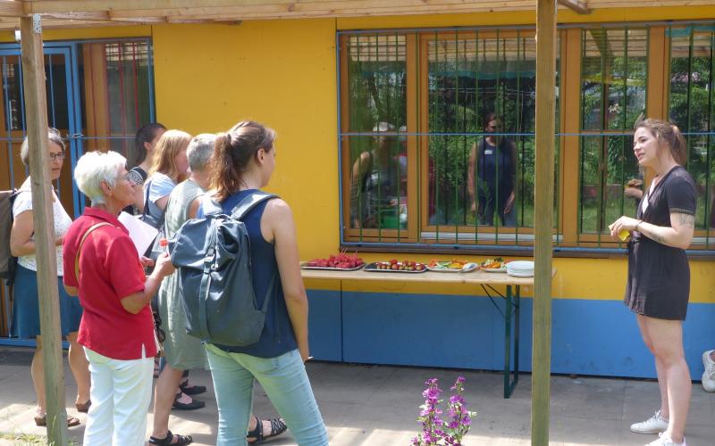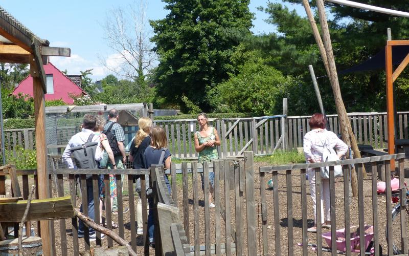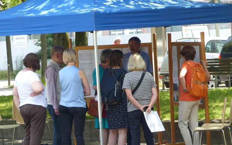 Am Nachmittag wurden die Teilnehmer*innen in 22 Gruppen aufgeteilt, die einen, von engagierten Bewohner*innen geführten Rundgang durch den Stadtteil machten. Diese Kleingruppen besuchten bei strahlendem Sonnenschein jeweils drei der 22 „Stationen“, sprich Einrichtungen im Stadtteil Sahlkamp.