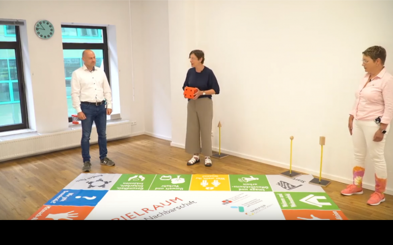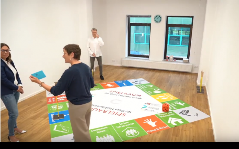 Als konkreten Vorschlag dafür brachte die LAG ein Würfelspiel mit Fragen zur aktiven Beteiligung vor Ort ein. In Kooperation mit dem Spielfeld Gesellschaft, einer Initiative der Niedersächsischen Lotto-Sport-Stiftung und der Niedersächsischen Landeszentrale für politische Bildung hat eine Projektgruppe das Spiel „SPIELRAUM für Gute Nachbarschaft“ für Bewohner:innen, Akteure in der Gemeinwesenarbeit, aber auch Kommunalpolitik und Verwaltung entwickelt.