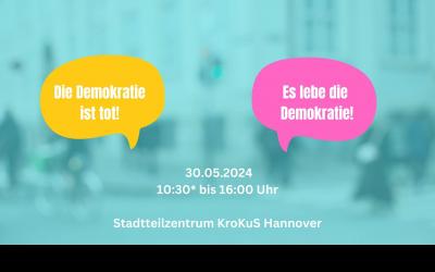 "Die Demokratie ist tot - es lebe die Demokratie" - unter diesem provozierenden Titel stand die Qualifizierungsveranstaltung im Stadtteilzentrum KroKus in Hannover. Sowohl die Ergebnisse der Umfrage...
