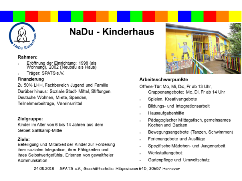 Solidarisch, Präventiv, Attraktiv, Tatkräftig, Sozial - SPATS e.V. fördert Lebensqualität im Quartier. WARUM GEMEINSAM? Die 5 "SPATSen" Stadtteilbauernhof, NAchbarschaftsDIenstLAden, NaDu-Kinderhaus, Wohnzufriedenheit und Senior*innen-Aktiv-Zentrum verbünden sich: Gerade in Quartieren mit demographischer Struktur und Geschichte wie dem Sahlkamp ist Zusammenhalt und nachbarschaftliche Solidarität so wichtig. Die Menschen leben quartiersbezogen mit kleinem Mobilitätsradius. Ihre unmittelbaren...