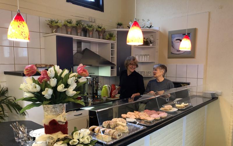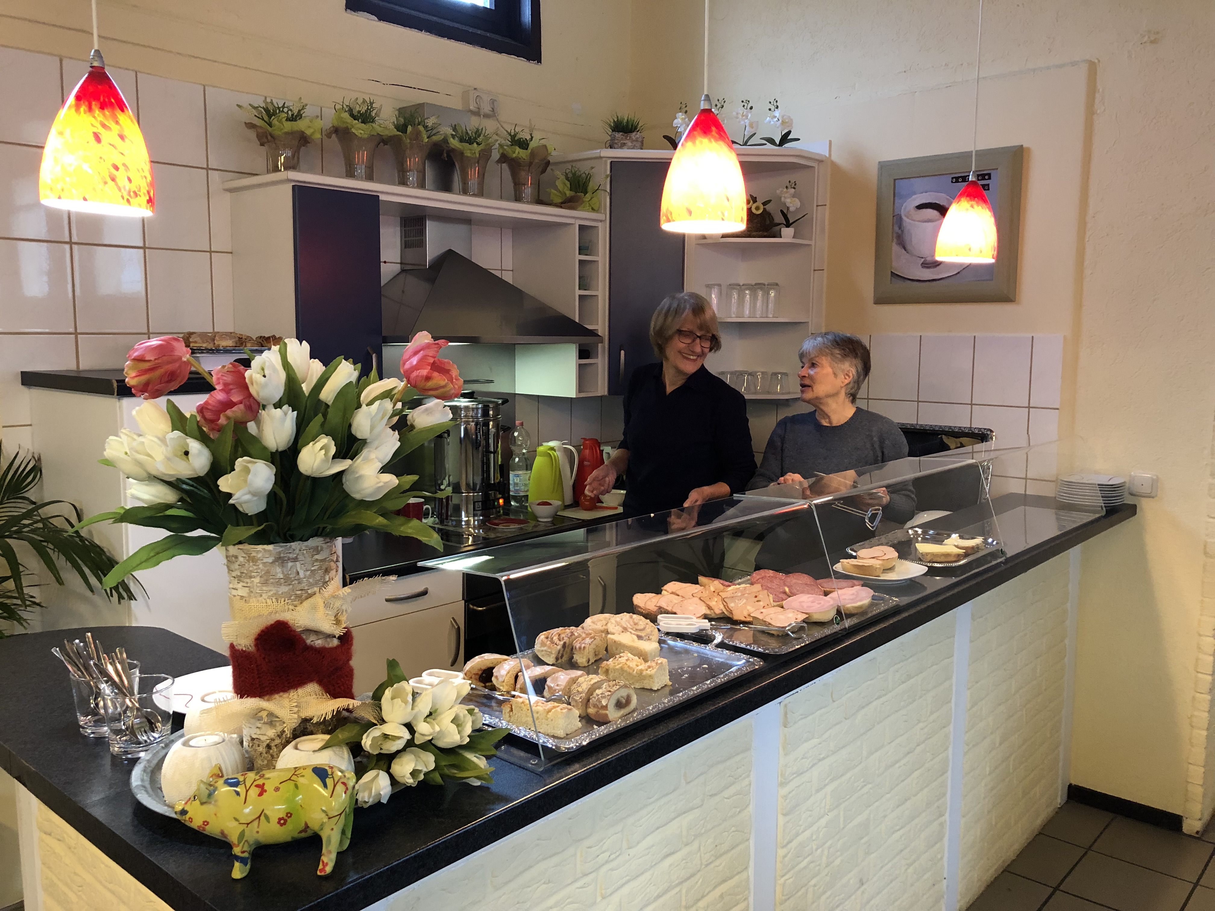 Zwei Mal in der Woche hat das Cafe parallel zur Essensausgabe der Tafel für Alle Bürger der Stadt Winsen (Luhe) geöffnet. Hier wird nicht nach dem Einkommen gefragt. Jeder Besucher/ jede Besucherin bekommt kostenlos Kuchen und/ oder geschmierte Brötchen und Kaffee oder Tee. Die Lebensmittel bekommen wir von der Tafel. Wir schaffen in den seperaten Räumen, jedoch in direkter Nachbarschaft zur Lebensmittelausgabe, durch einen Tresen, durch die Tische mit den Stühlen und durch unsere jahrezeitlich orientierte Tischdekoration eine ansprechende Cafe-Athmosphäre. Unser Cafe wird in den 2,5 Stunden Öff.-Zeiten von ca. 40 bis 80 Besuchern genutzt. Es kommen auch Besucher, die sich hier treffen und klönen wollen. Über die "Verschönerung der Wartezeit" ist das Cafe bereits zu einem kleine Stadtteiltreff mit einer großen Zahl von Stammbesuchern geworden.
