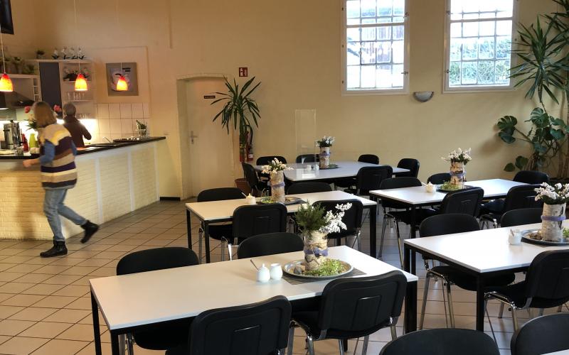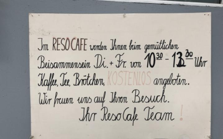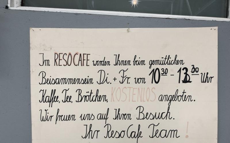 Parallel zur Essenausgabe der Tafel, bieten wir ein Cafe an, um so den Menschen die Wartezeit der Lebensmittelausgabe zu erleichtern, Ihnen die Möglichkeit eines Cafe-Besuches zu ermöglichen und so ein Stück Öffentlichkeit, soziale Kontakte und den Zugang zu den Angeboten der Reso-Fabrik zu ermöglichen.