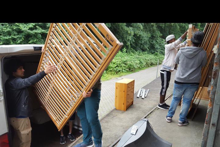 Asylsuchenden helfen eine Wohnung mit allen benötigten Dingen des Alltags auszutatten