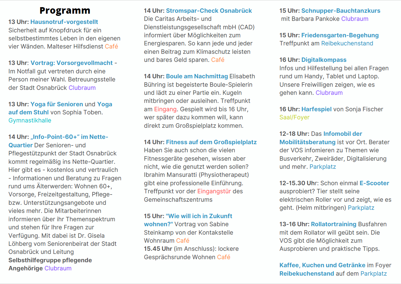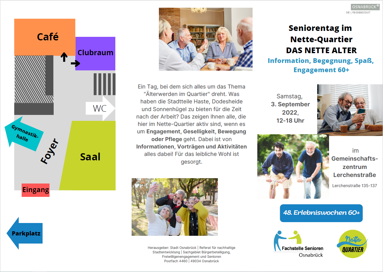 Der Ansatz erweitert die Akteursarbeit um die Zielgruppe 60+ und erschließt das Engagement- bzw. Mitwirkungspotential aller Bewohner für die Quartiersentwicklung. Im Rahmen der GWA wurden Projekt und Gemeinwesenarbeiter vorgestellt, Angebote und Informationen gebündelt, erste Medien (Präsentation, Flyer, Webseite) erstellt. In Kooperation mit den Hauptakteuren wurden Bürgerveranstaltungen initiiert. Mit der Coronakrise begann eine vom Nette-Quartier koordinierte Zusammenarbeit der Hauptakteure, die Unterstützungsstrukturen geschaffen und freiwillige Helfer akquiriert hat.