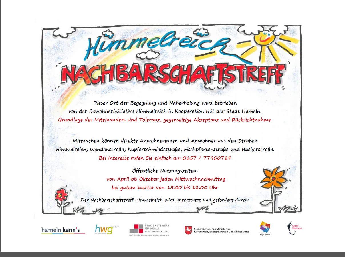 Klares Projektziel ist es, GWA in Hameln zu verstetigen - als Pendant zum bereits dauerhaft etablierten QM. Auf der Vor-Ort-Ebene ist GWA dringend erforderlich, um die durch Corona erschwerten oder unterbrochenen Selbstorganisationsprozesse von Bewohnergruppen unterstützen zu können und kultur-/generationsübergreifende Begegnungs-/Beteiligungsmöglichkeiten zu eröffnen. Zu der Fülle an unterschiedlichen Formaten zählen z.B. das Urban-Gardening-Projekt der Bewohnerinitiative „Himmelreich“, "Fill-the-Bottle-Challenges“ gegen Zigarettenkippen in der Altstadt sowie „Nachbarschafts-Speed-Datings“ in neuen Wohngebieten. „Social Innovation Nights“ und ein Beteiligungsmobil eröffnen neue Zugänge zu bisher ungenutzten Potenzialen und setzen zukunftswirksame Stadtteildynamiken in Gang.