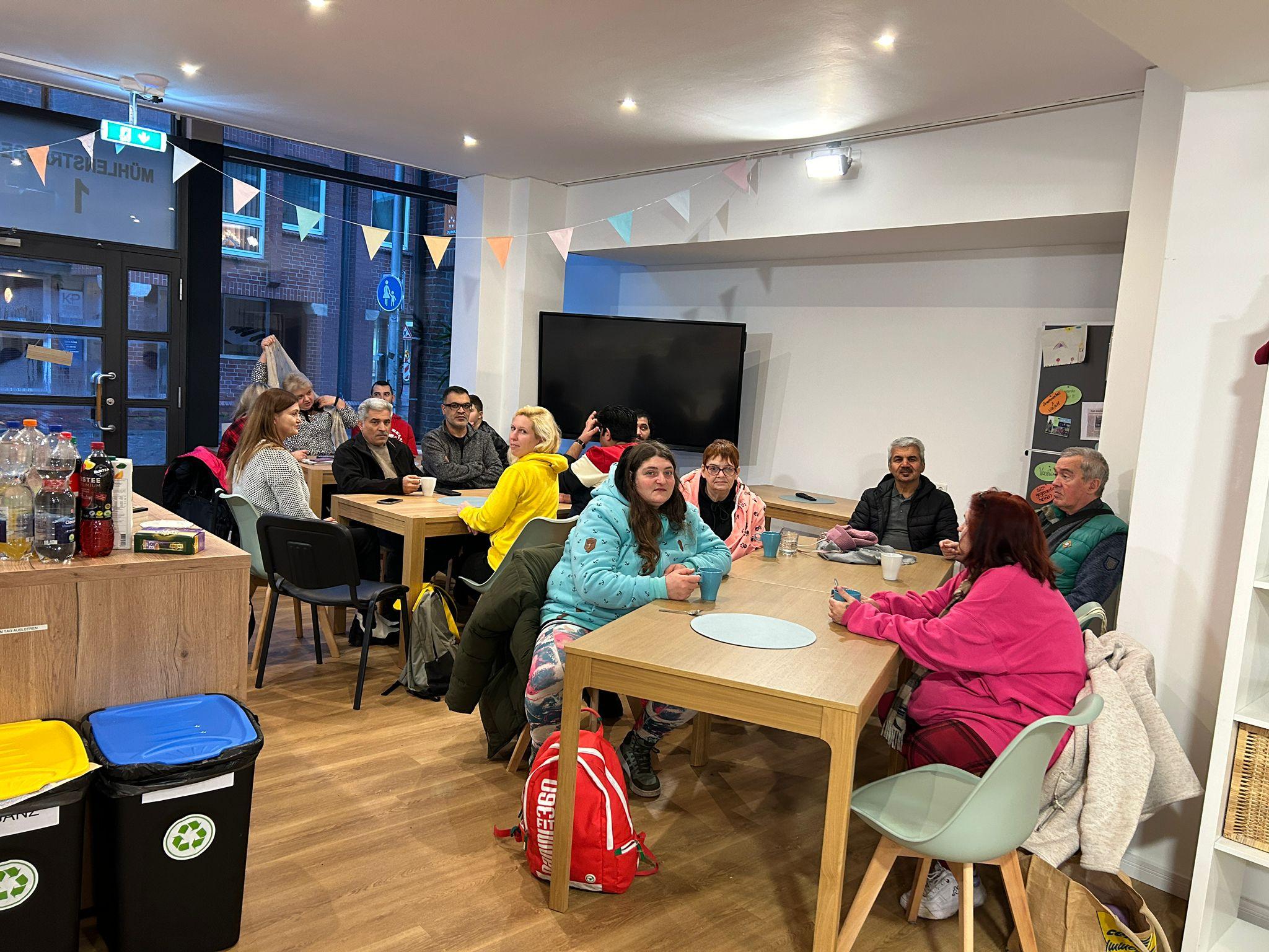 Der Bedarf, an einem zentral gelegenen, niederschwelligen Begegnungsort, der Vielfalt lebt und Ambiguitätstoleranz fördert, der gleichzeitig Raum zu Mitgestaltung gibt, ist also größer als je zuvor. Seit April 2023 sind wir aktiv im Quartier integrativer Nachbarschaftreff tätig. Das Projekt trägt dazu bei, das nachbarschaftliche Miteinander zwischen Menschen mit und ohne Migrationsgeschichte im Quartier sowie den Aufbau sozialer Netzwerke zu fördern. Die Besucher*innen begegnen sich bei uns in einer inklusiven Atmosphäre und auf Augenhöhe. Des Weiteren bieten wir den Anwohner*innen Raum für vielfältige nachbarschaftliche Initiativen zu geben und dabei eigene kleinere Projekte zu verwirklichen