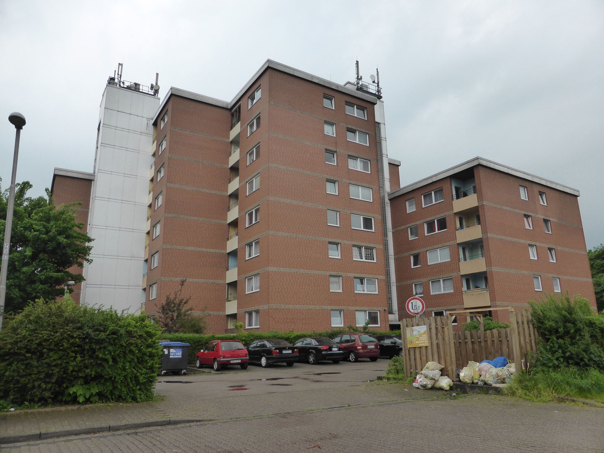 Im Quartier rund um die Hüttenstraße leben seit den 70er Jahren überwiegend Menschen mit Migrationsgeschichte. Ehemalige Gastarbeiter aus der Türkei und russisch-stämmige Spätaussiedler prägten lange Zeit das Quartier. Konflikte zwischen den unterschiedlichen Kulturen waren an der Tagesordnung.Seit 2012 ziehen massiv Geflüchtete aus Syrien, Afghanistan und den Balkanstaaten in die Wohnblocks. Es gibt keinen zentralen Treffpunkt für Gemeinwesenarbeit. Die dort tätige Dezentrale Flüchtlingssozialarbeit ist nicht im Quartier stationiert. Im Projektgebiet leben rund 28 Prozent aller Ausländer der Kreisstadt. Der Ausländeranteil im Quartier liegt bei 43,8 Prozent. Der Anteil der Menschen mit Zuwanderungsgeschichte ist weitaus höher, wird aber statistisch nicht erfasst. Es fehlen im Quartier ausreichende Beschäftigungsmöglichkeiten für Flüchtlinge. Außerdem ziehen permanent insbesondere Geflüchtete zu. Einer Perspektivlosigkeit und einer Zunahme der Kriminalität soll mit diesem Projekt ebenfalls entgegengewirkt werden.
