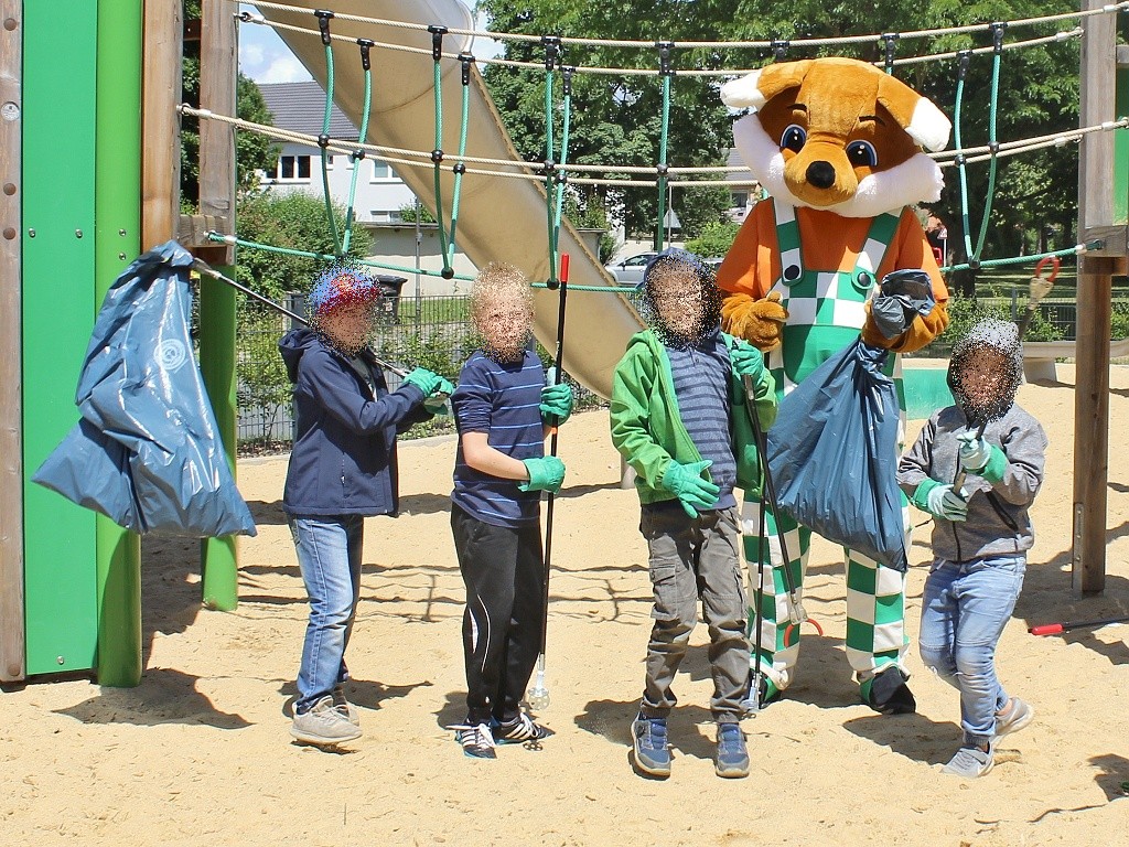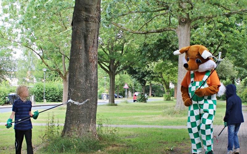 Wir sagen also nicht "Kommt und räumt mit uns den Spielplatz auf!" sondern "Helft dem Stadtteilfuchs Foxie den Spielplatz aufzuräumen!".
